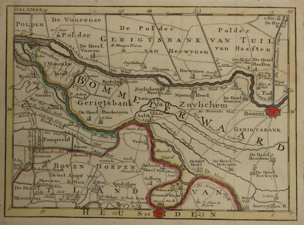 Kaartje van de Bommelerwaard. Topografische aanduidi...