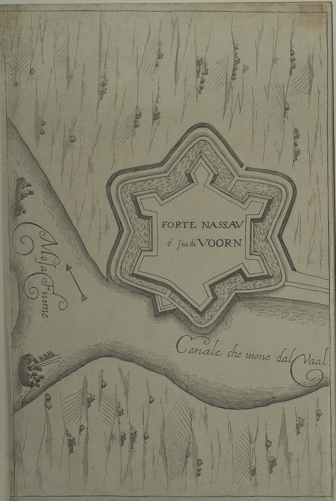 plattegrond fort Nassau of De Voorn met de rivieren ...