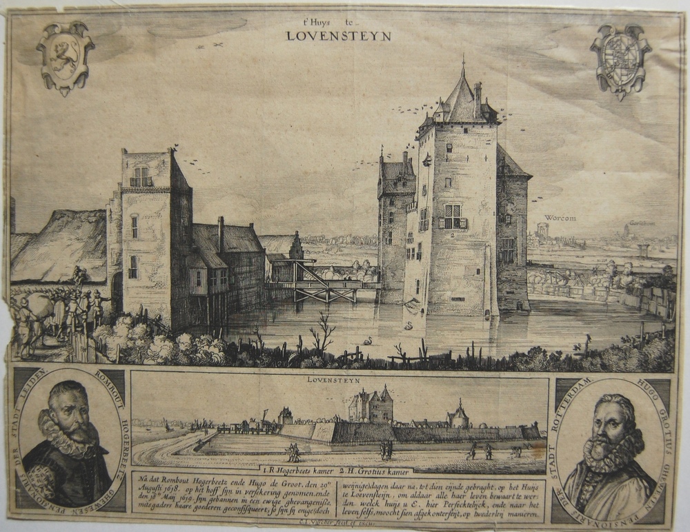 Vierdelige prent met twee keer slot Loevestein, Hugo...