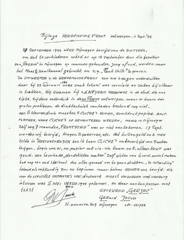 Fotokopie (kleur) herdenkingsprent van Gerard Jacobs...