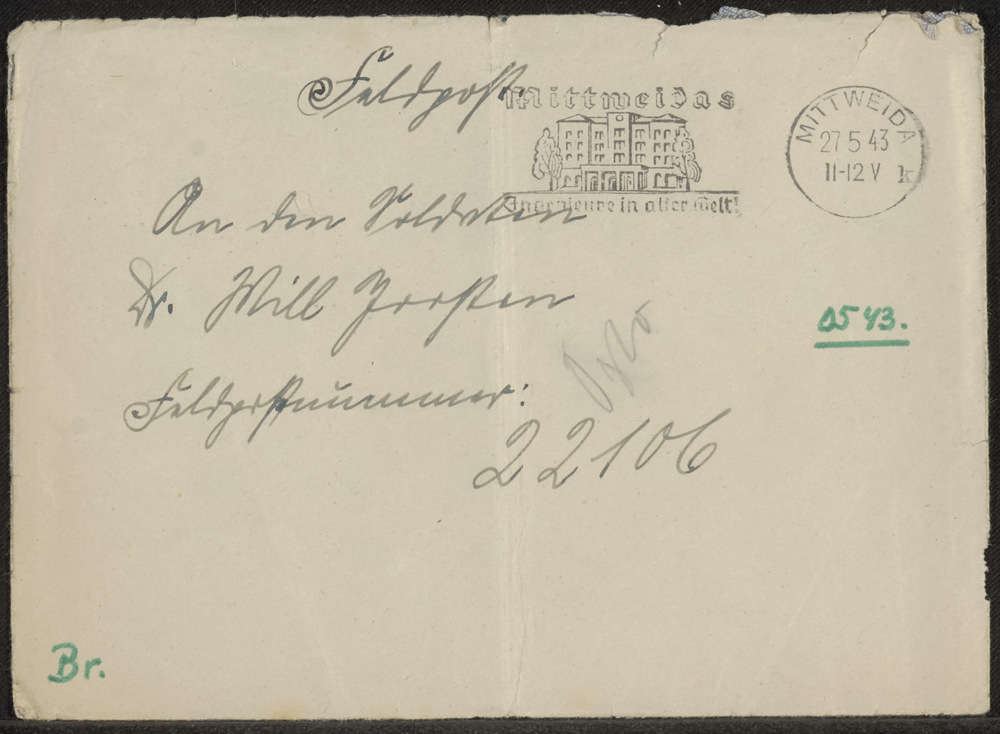 cremekleurige envelop feldpost Mittweida 27.5.'43