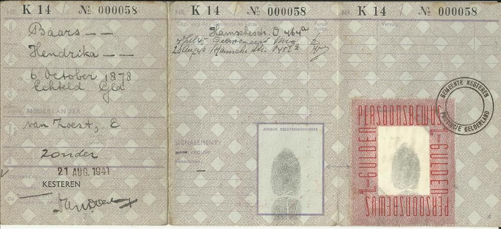 Persoonsbewijs van Hendrika Baars geboren 6 oktober ...