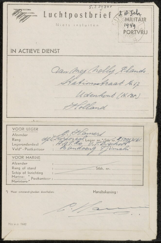 Envelop behorend bij handgeschreven brief van M.J. d...