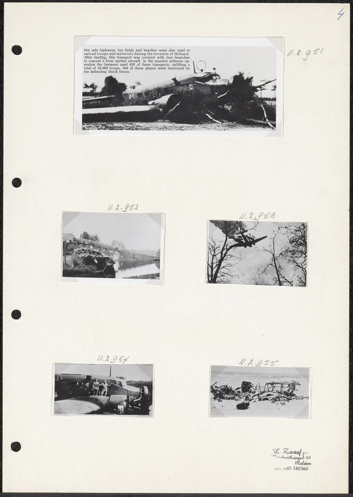 Foto uitgebrand wrak Duits Junkers Ju 52 transportvl...