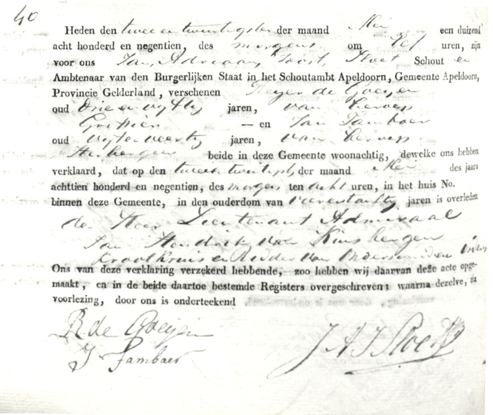 Overlijdensakte Luitenant-admiraal Jan Hendrik van K...