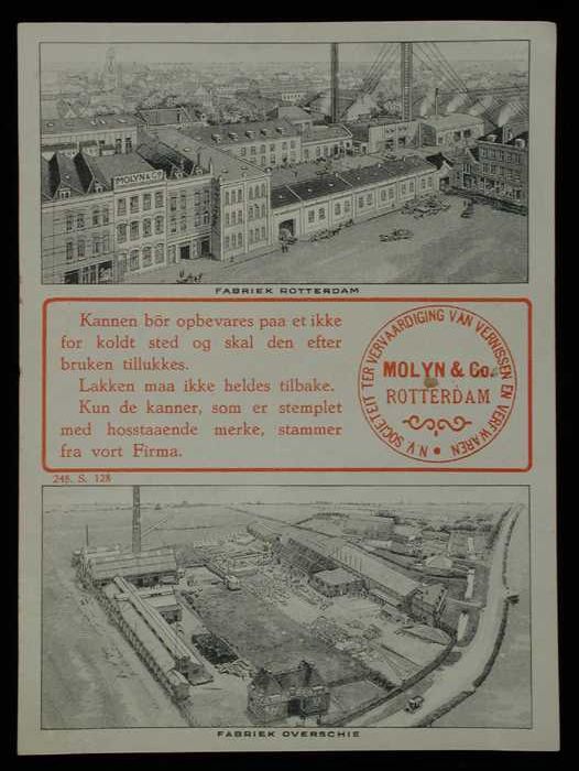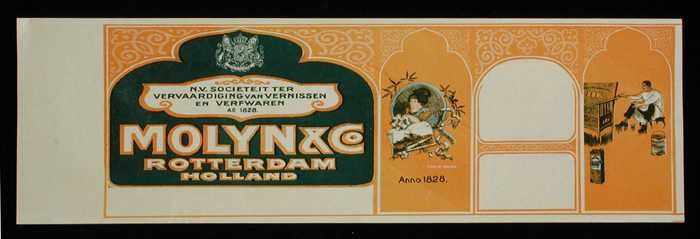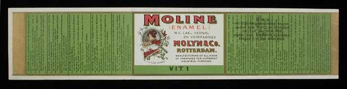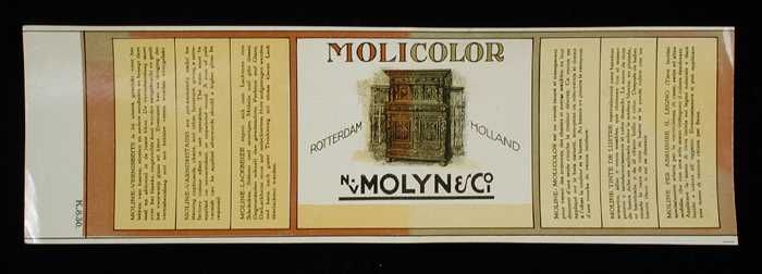 Etiket voor verfblikje van "Molyn & Co. / Rotterdam"...