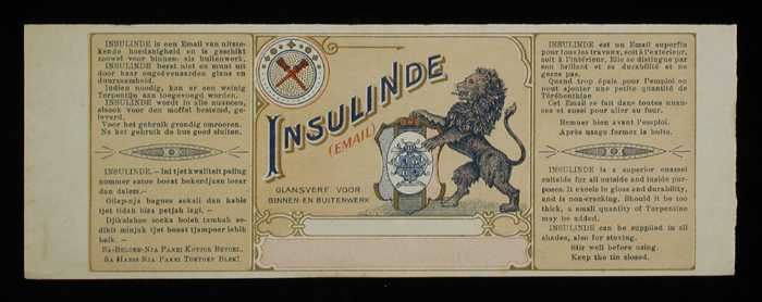 Etiket Insulinde (email) glansverf met rijzende leeu...
