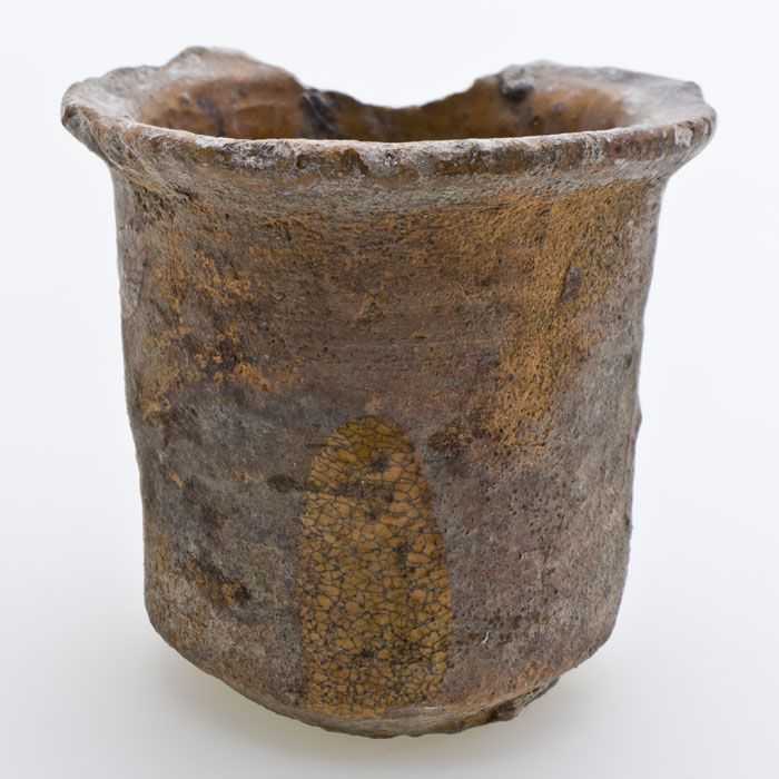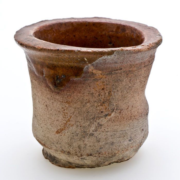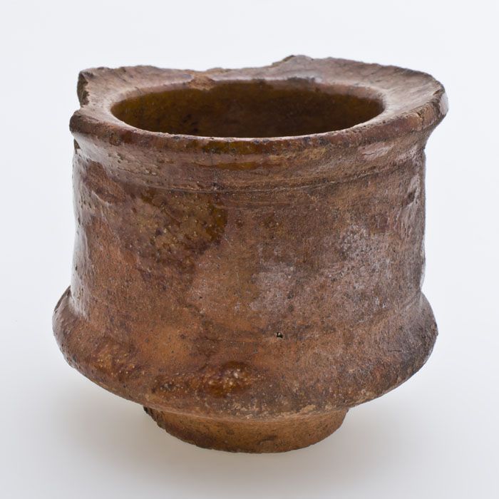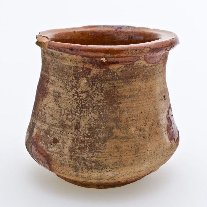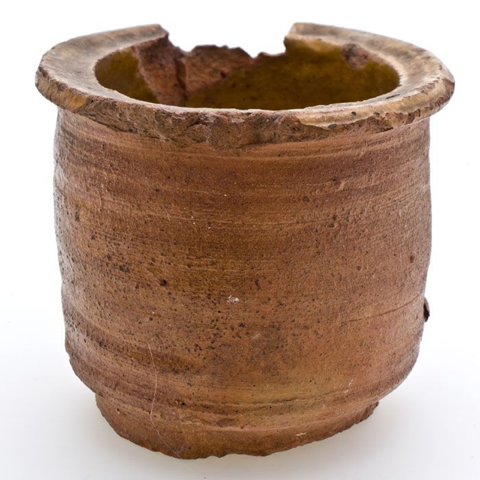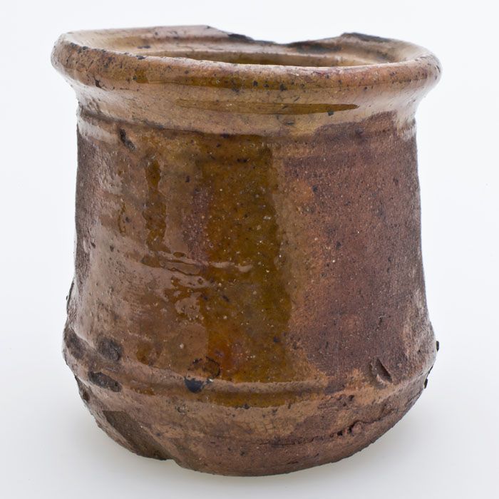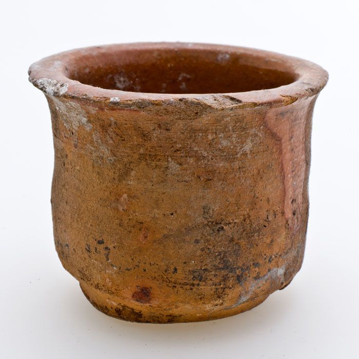 Aardewerk zalfpot, beker model, rode scherf, inwendi...
