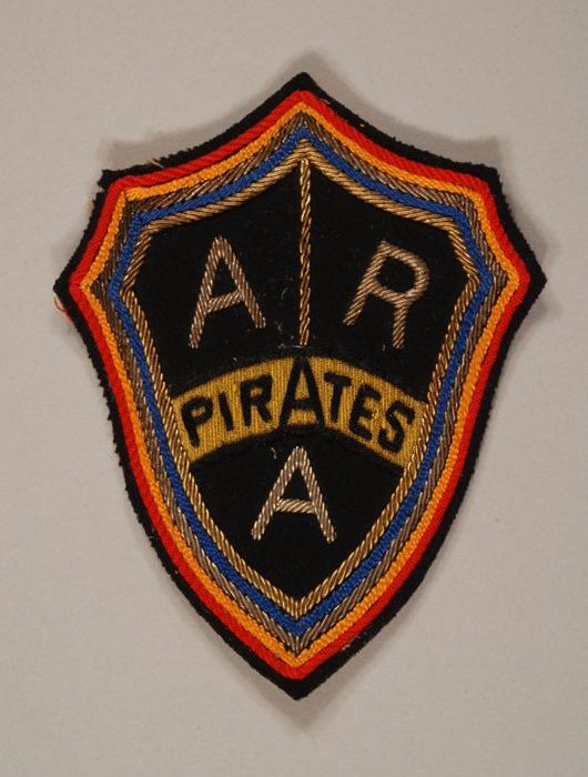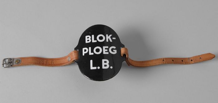 Ovaal zwart-geëmailleerd armschildje met "BLOK-PLOEG...