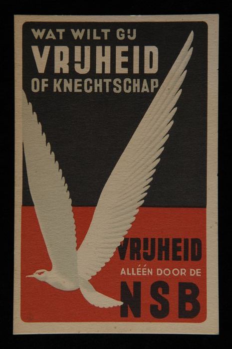 Briefkaart van de N.S.B. "Wat wilt gij VRIJHEID of k...