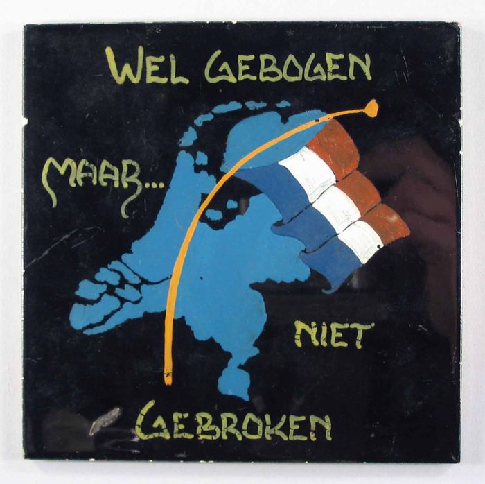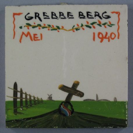 Wandtegeltje, handbeschilderd veldgraf bij hek met k...