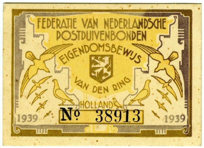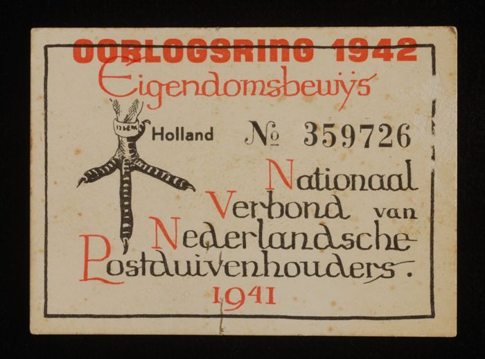 Kaartje (eigendomsbewijs) behorend bij duivenpootje,...