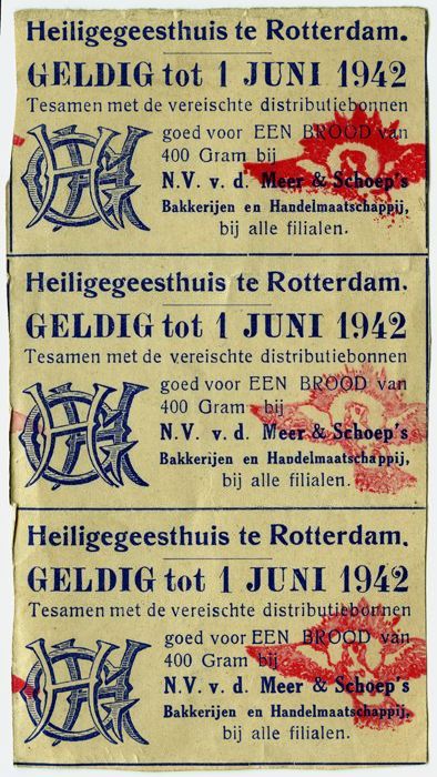 Drie wit-blauw-rode bonnen aan elkaar, met "Heiligeg...