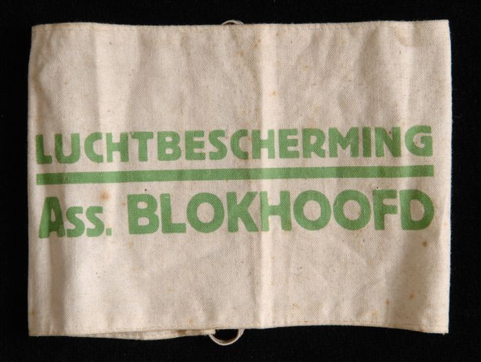 Mouwband, wit katoen met groene opdruk "Luchtbescher...