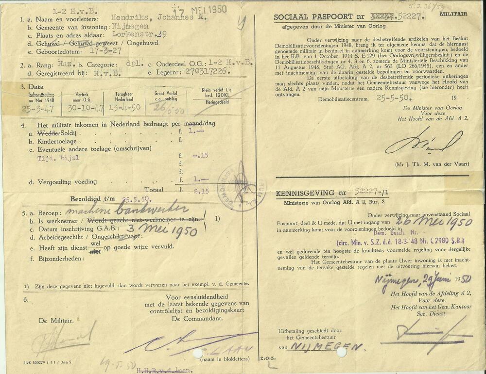 Sociaal paspoort, afgegeven door de Minister van Oorlog