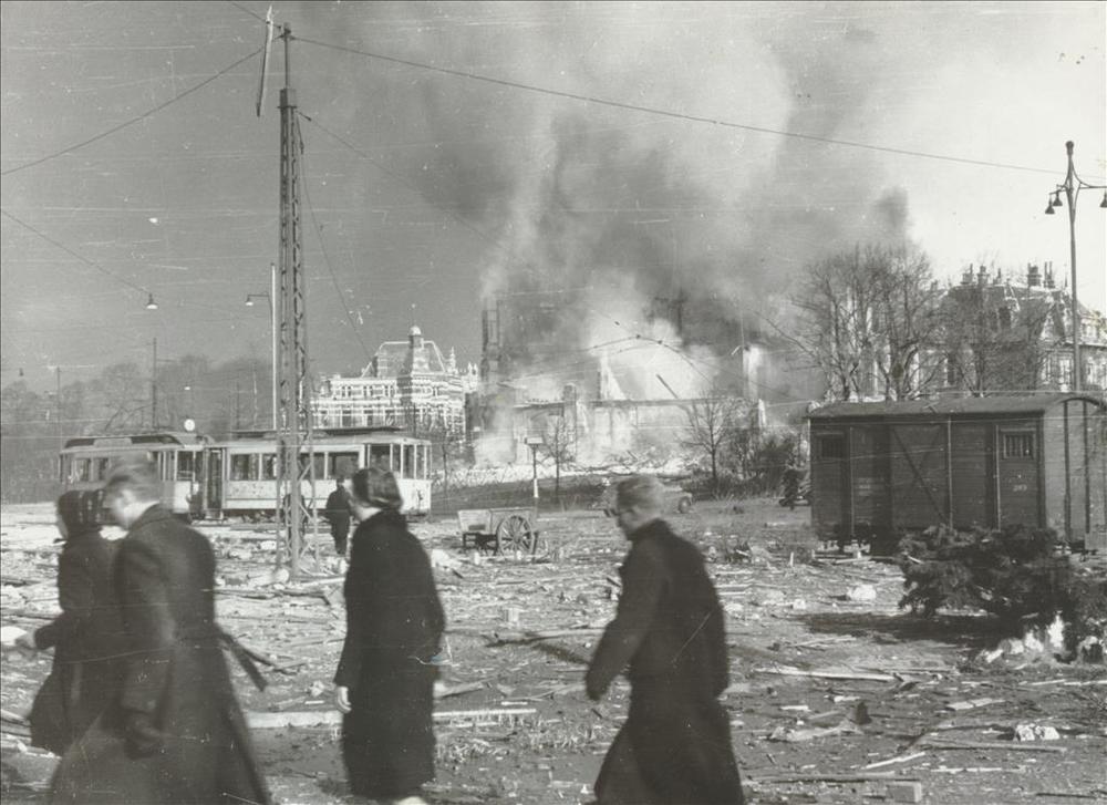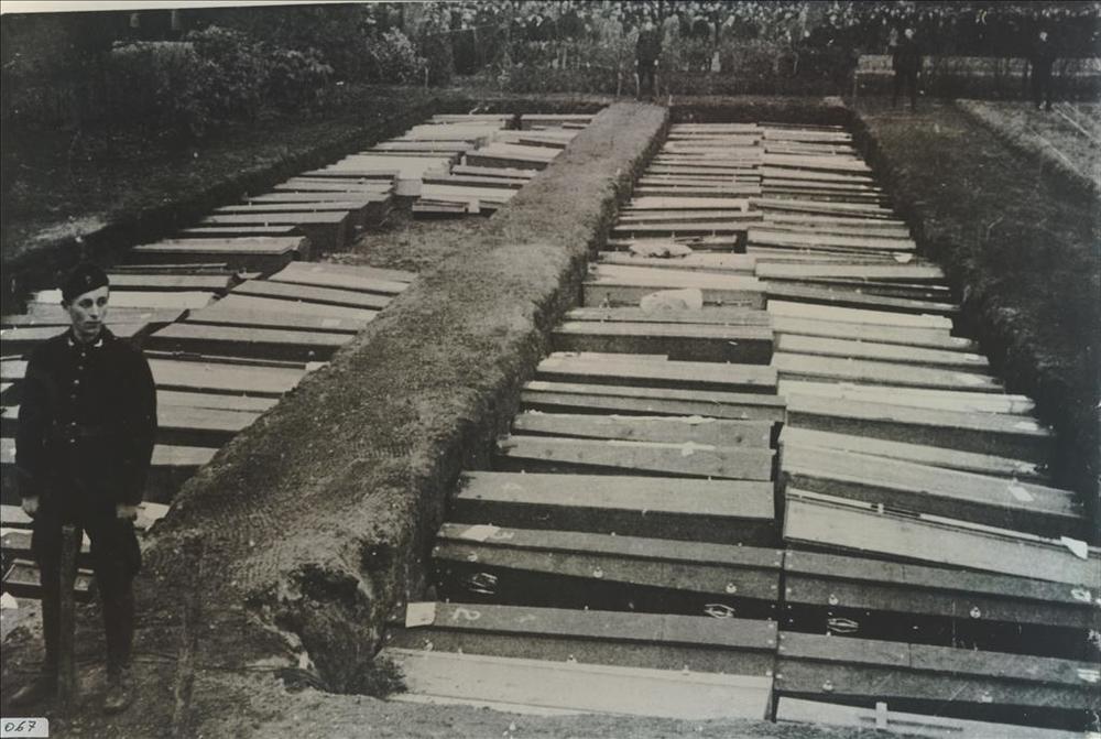 Doodskisten in Nijmegen na bombardement