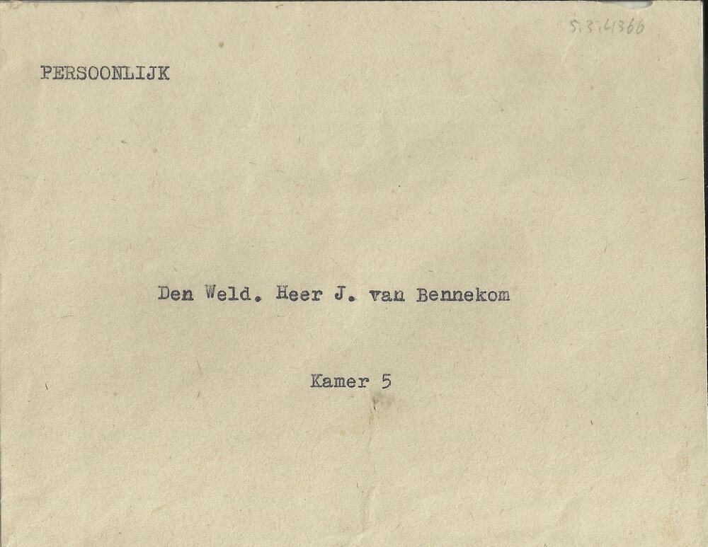 Geadresseerde enveloppe aan Dhr. v. Bennekom
