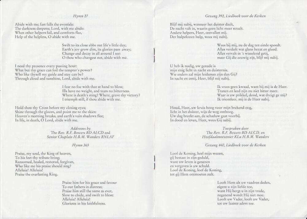 programma Airborne Memorial Service, Oosterbeek 1999