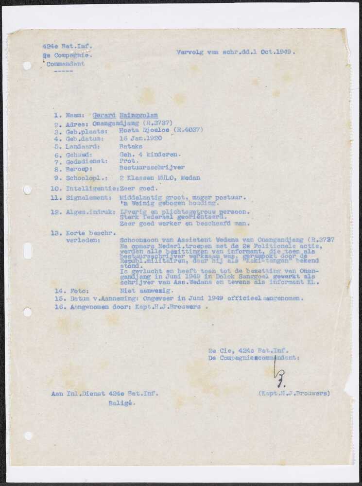 Getypte brief van kapitein H.J. Brouwers met gegeven...