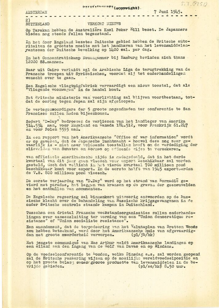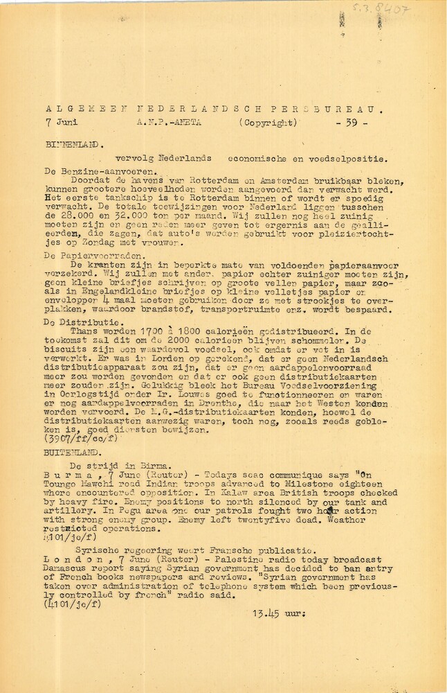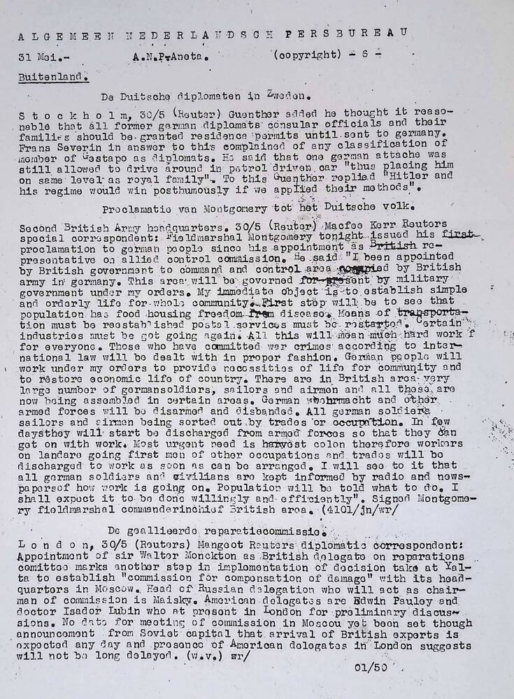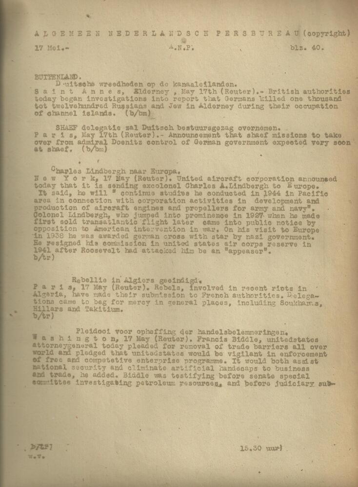 Algemeen Nederlandsch Persbureau, mededelingen, 17 m...