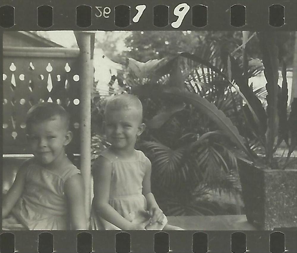 Indië - twee kinderen op de veranda