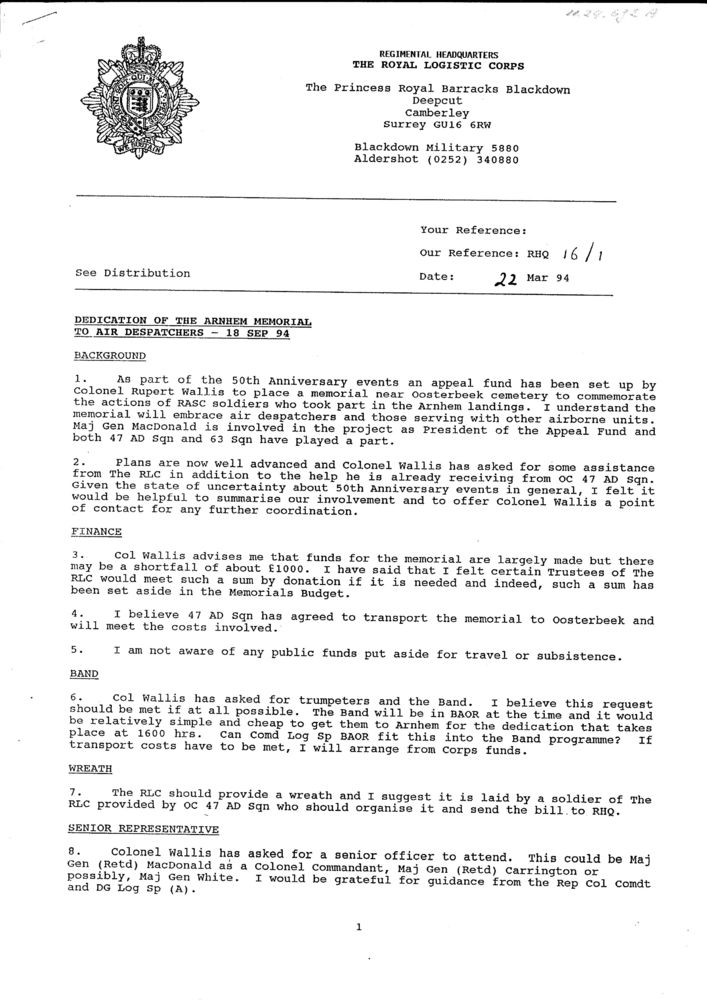 Dedication of the Arnhem Memorial to the Air Despatc...
