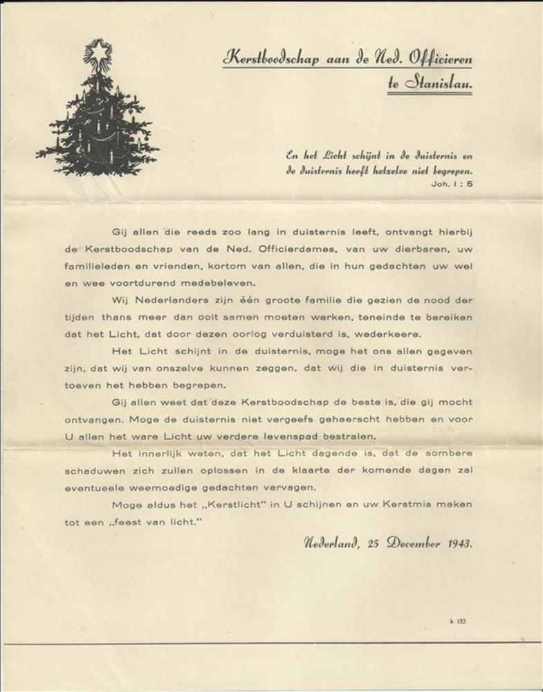 Kerstboodschap aan de Ned. Officieren te Stanislau, ...