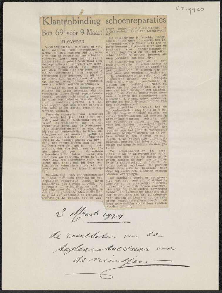 krantenknipsel: Klantenbinding schoenreparaties