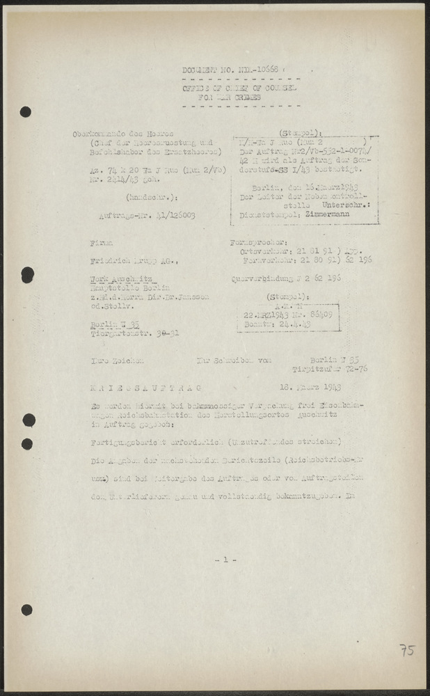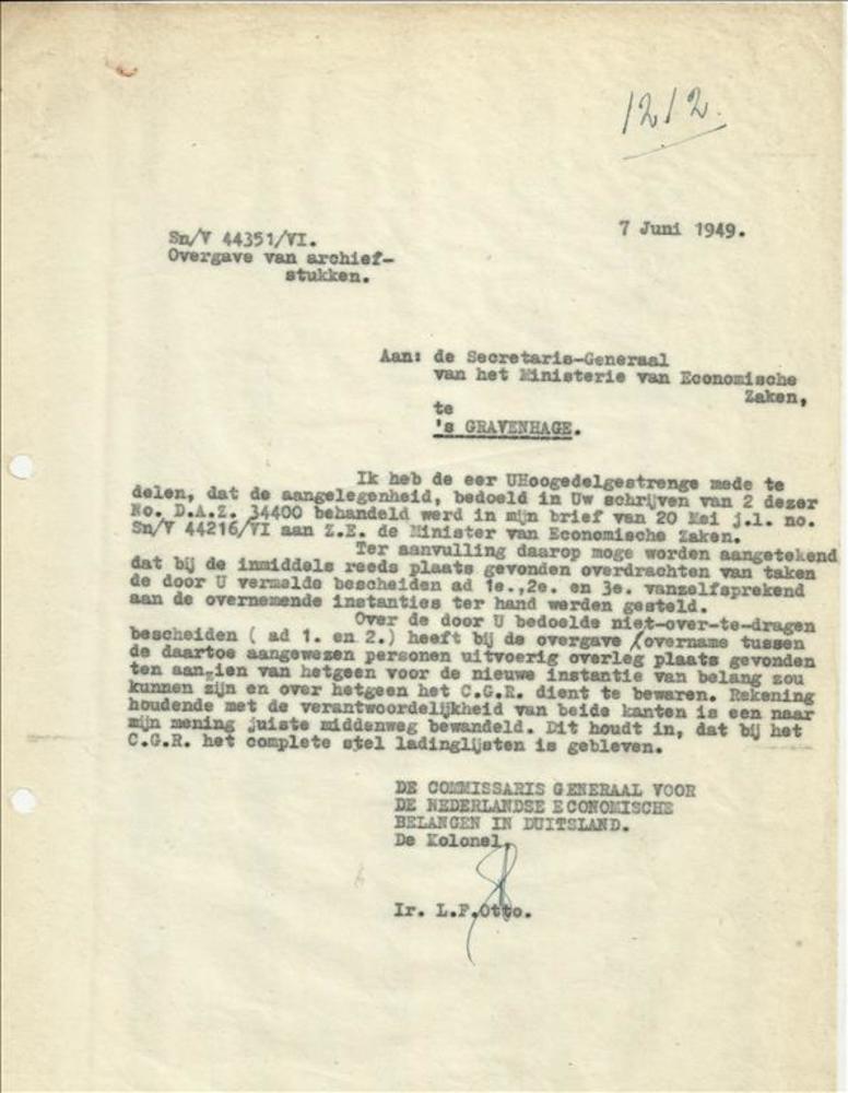 brief van Kol. Otto aan de Secretaris-Generaal van h...