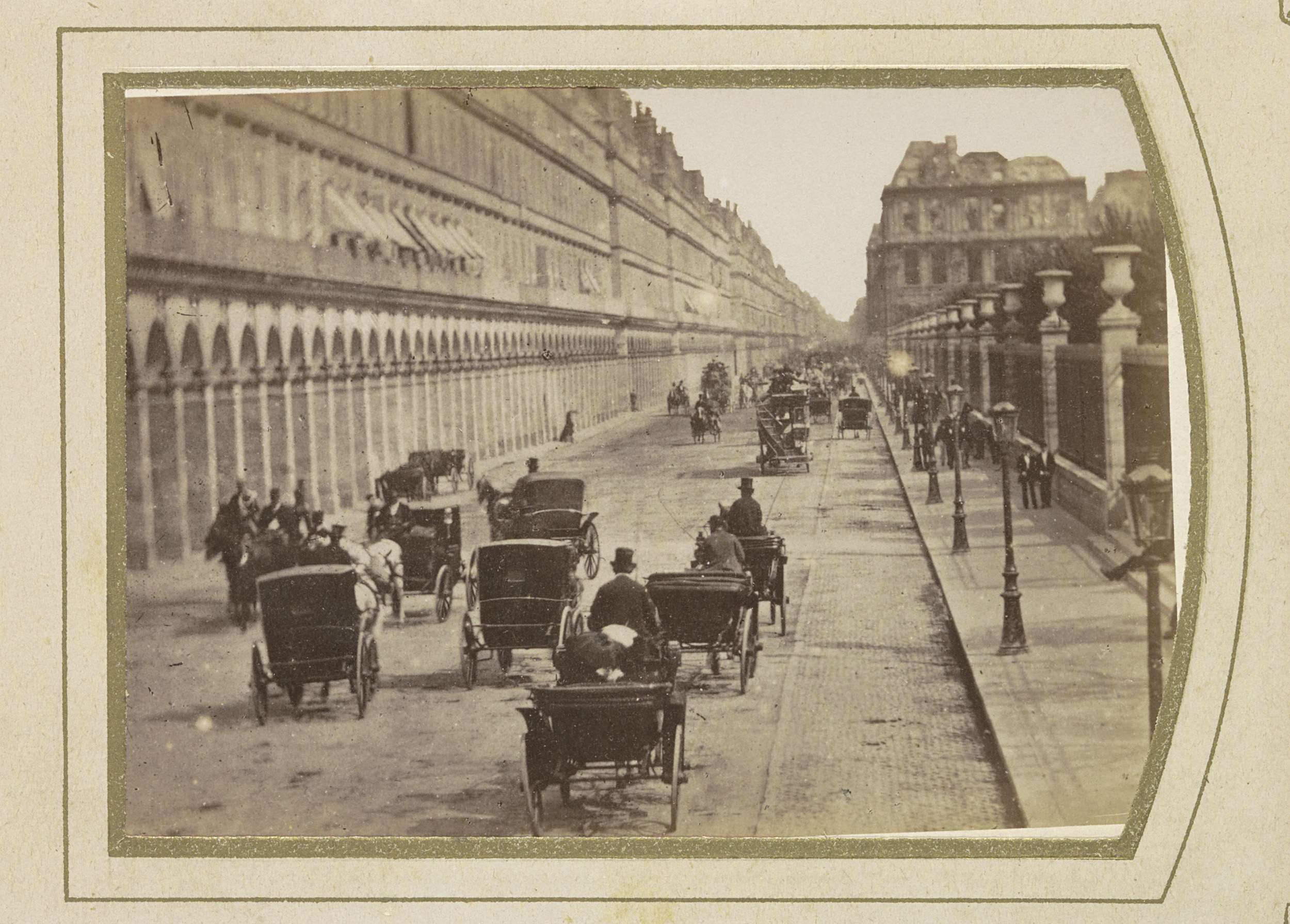 Paardenkoetsen in de Rue de Rivoli te Parijs