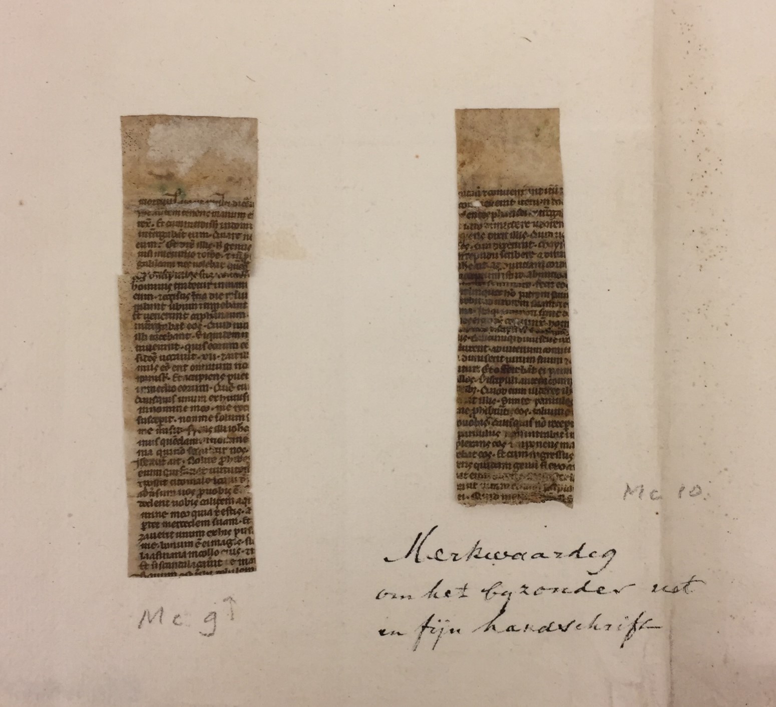 Fragmenten, twee stuks, alfabetische lijst letters M...