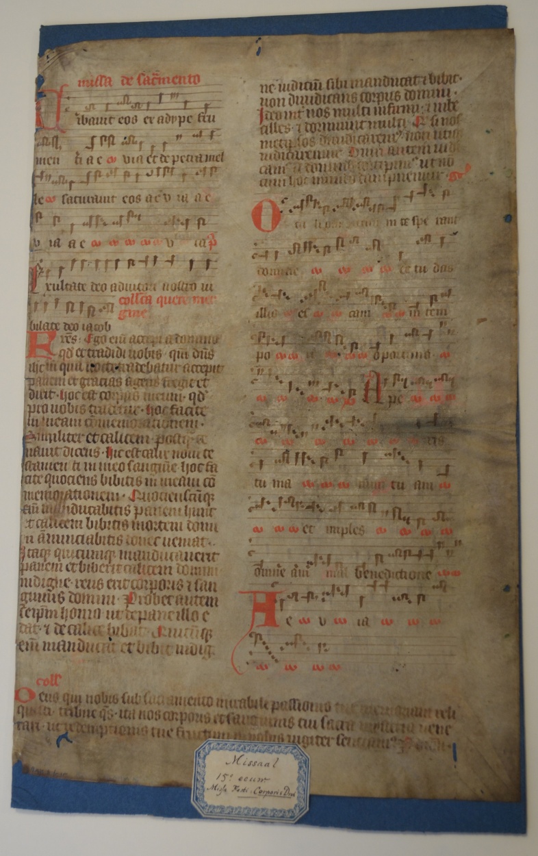 Fragment uit een Missale, inhoud: Sacramentsdag
