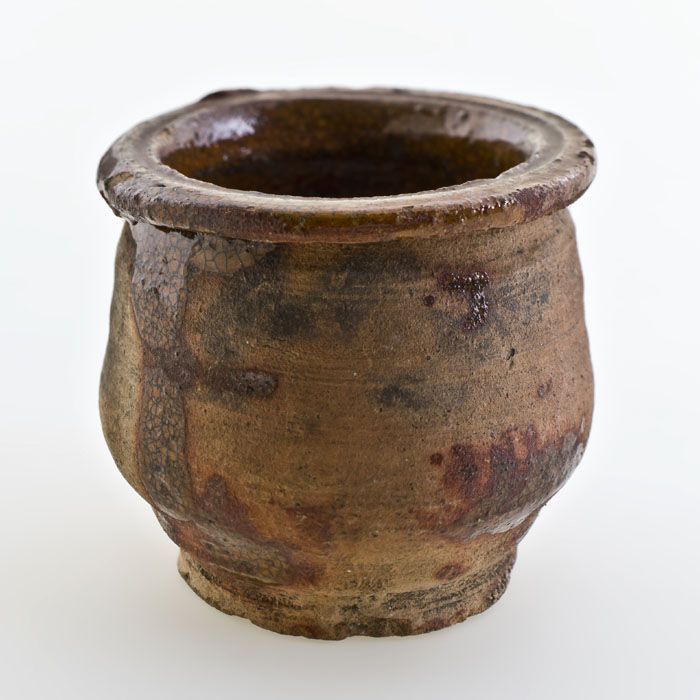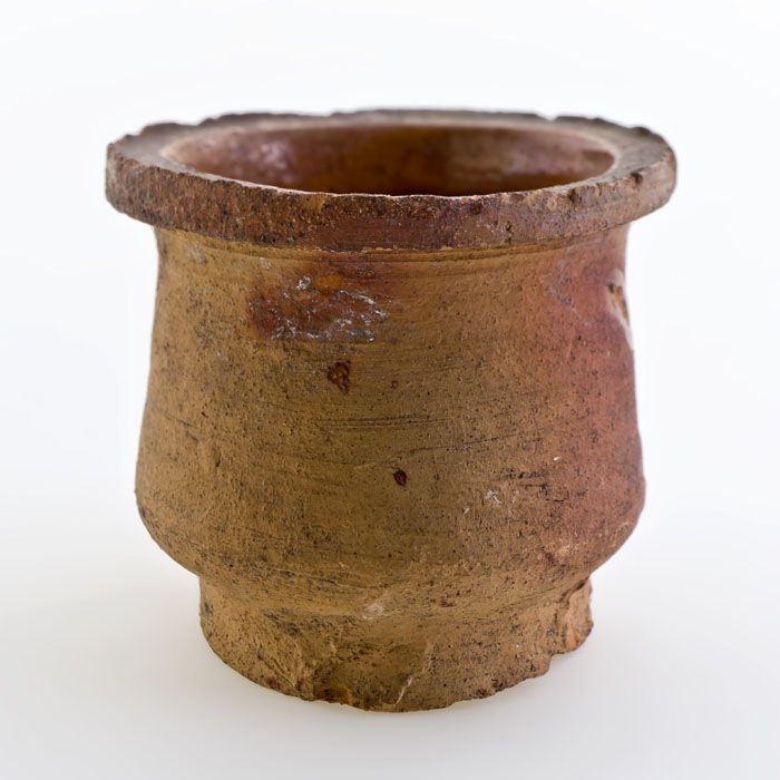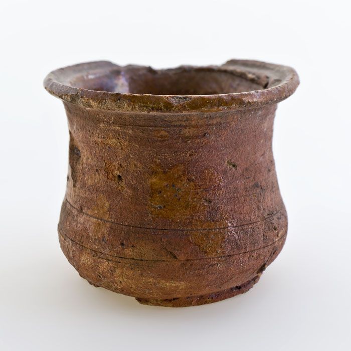 Aardewerk buikmodel zalfpot, rode scherf, inwendig s...
