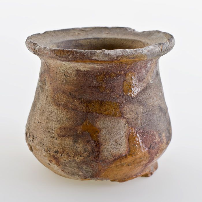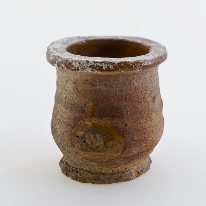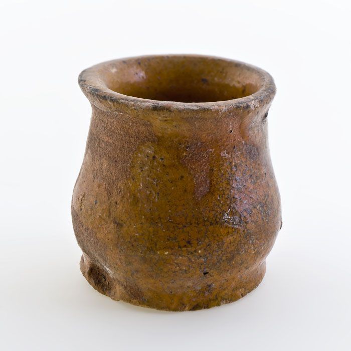 Aardewerk buikmodel zalfpot, rode scherf, inwendig g...