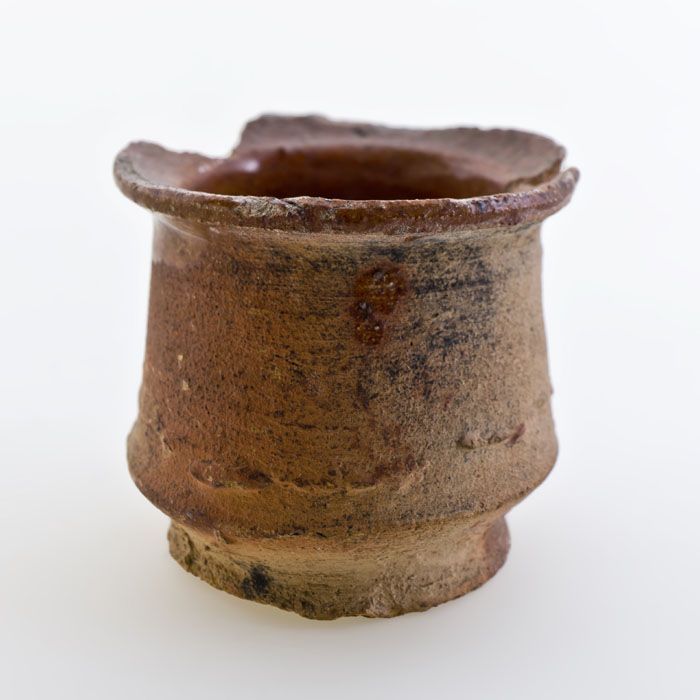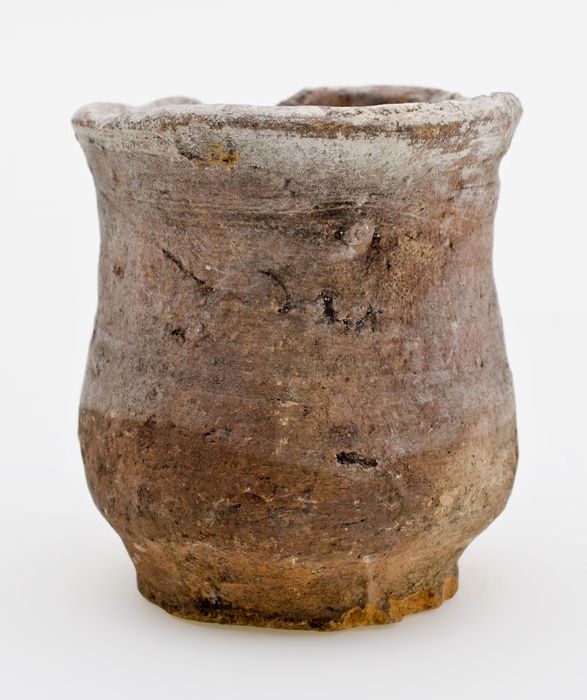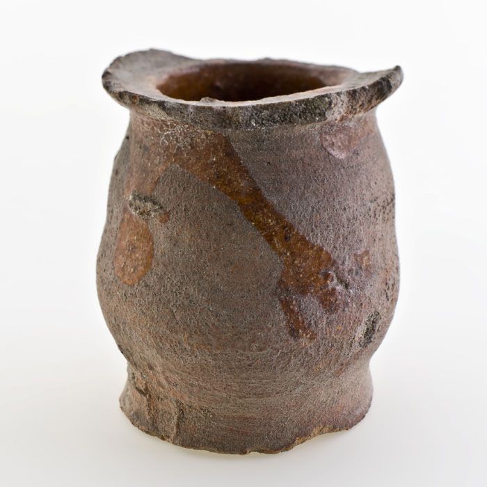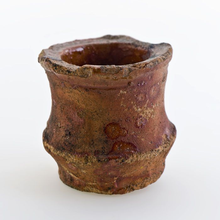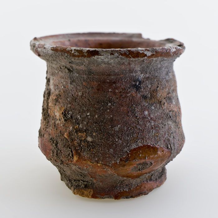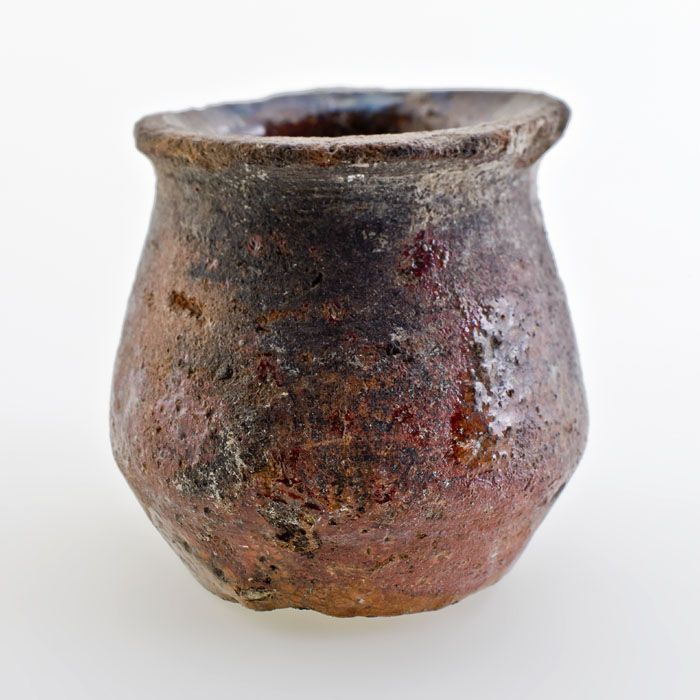 Aardewerk buikmodel zalfpot, rode scherf, geheel geg...