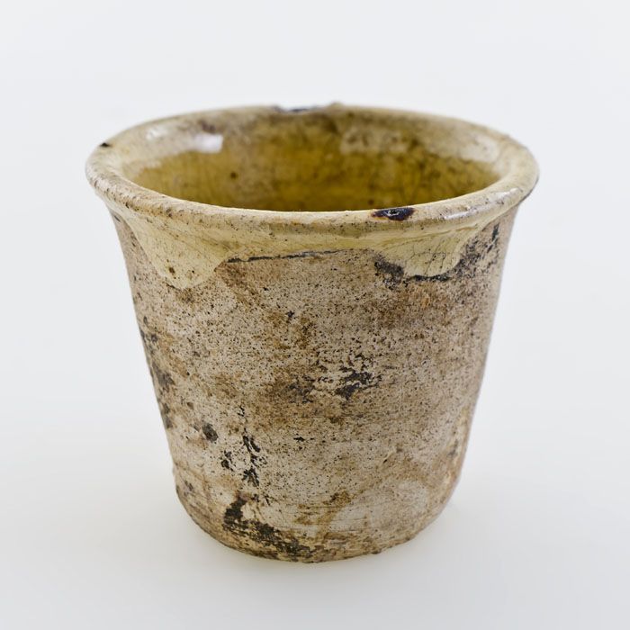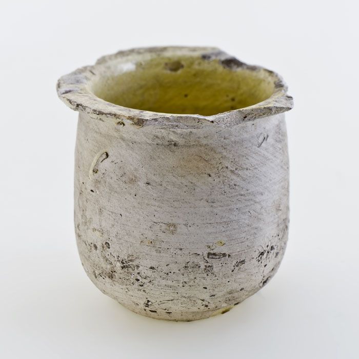 Aardewerk zalfpot, witte scherf, inwendig geel gegla...