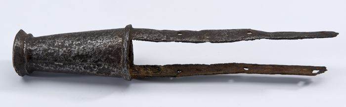 Nierdolk met gesneden houten gevest met ijzeren en b...