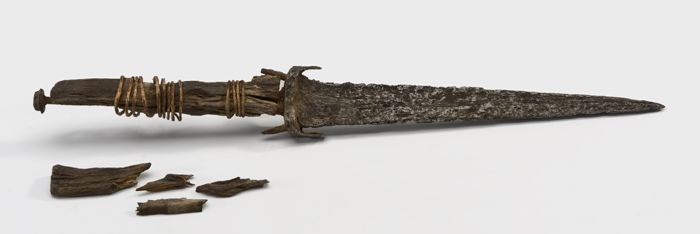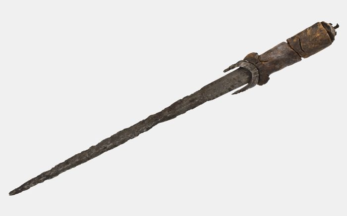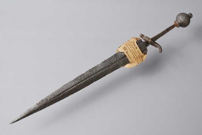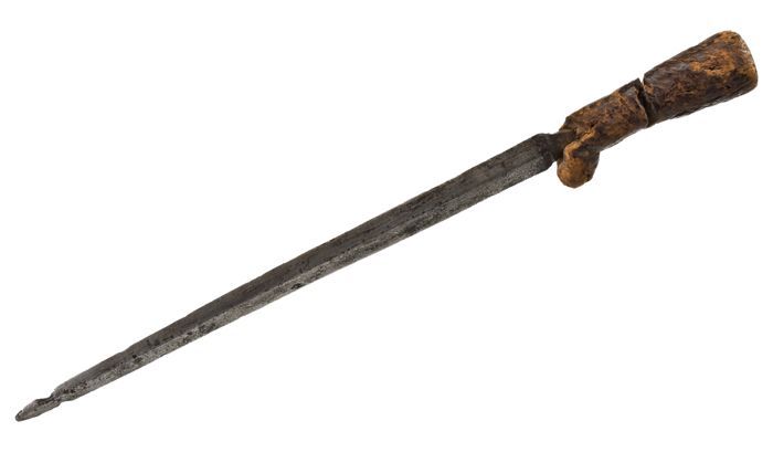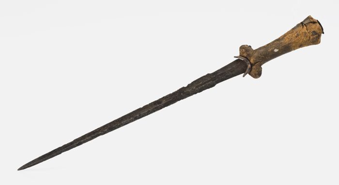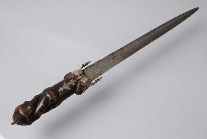 Nierdolk met houten gevest en lang dun tweesnijdend ...