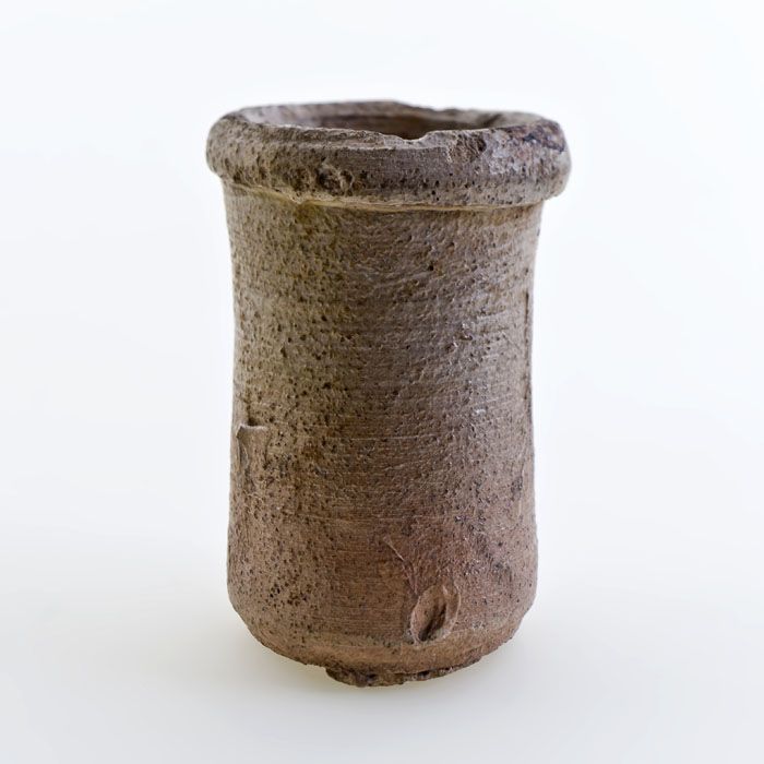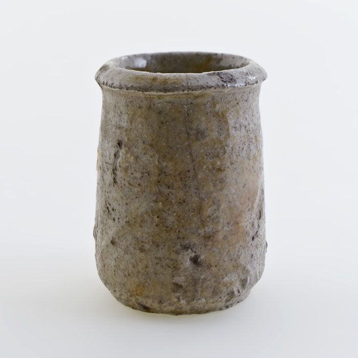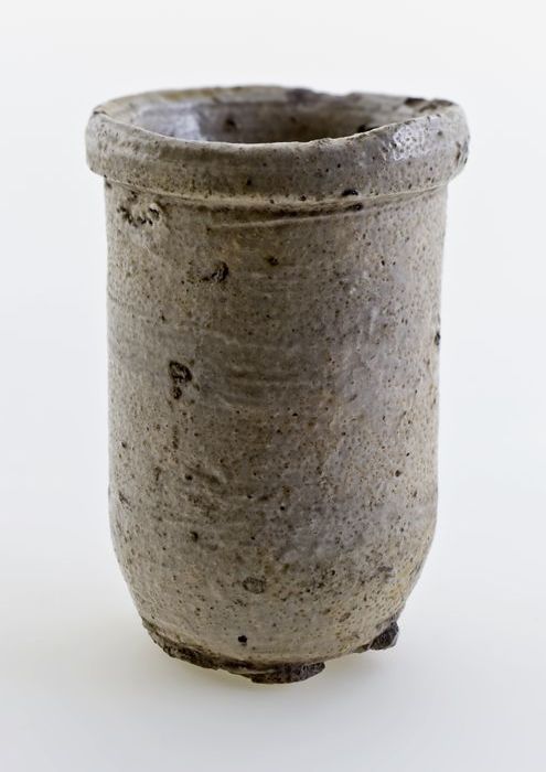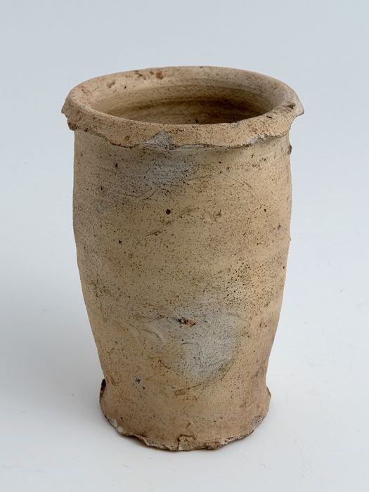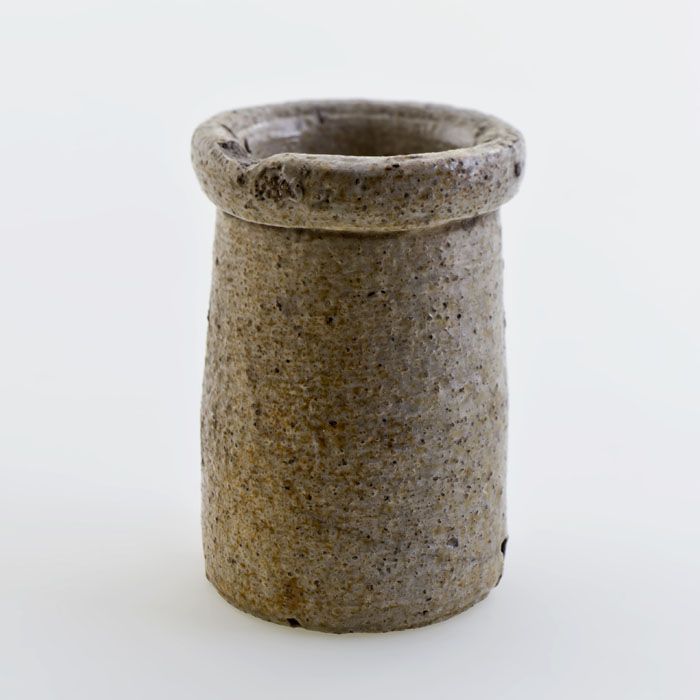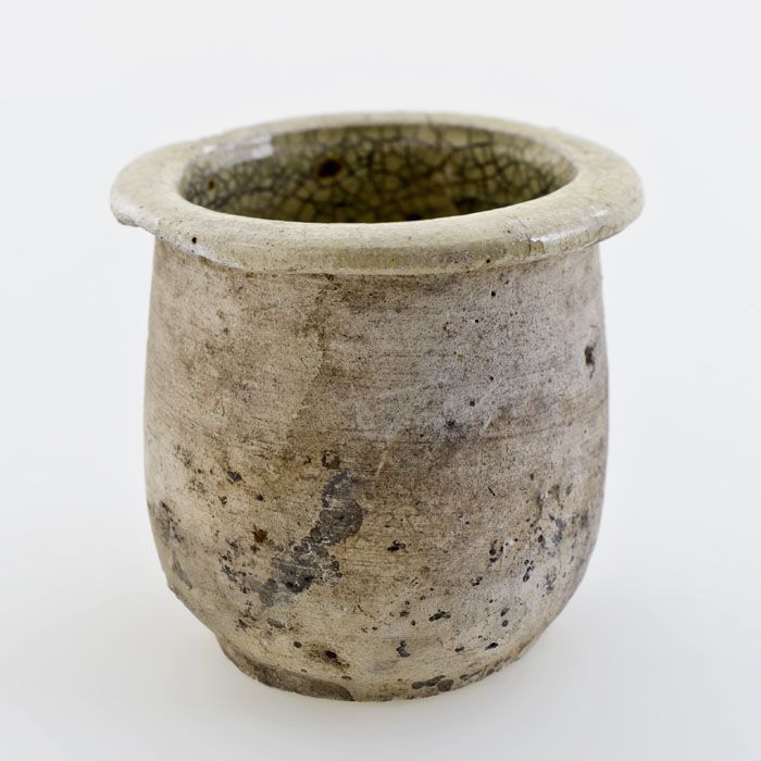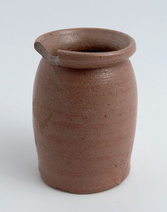 Steengoed zalfpot, inktpot, witte scherf, geheel geg...