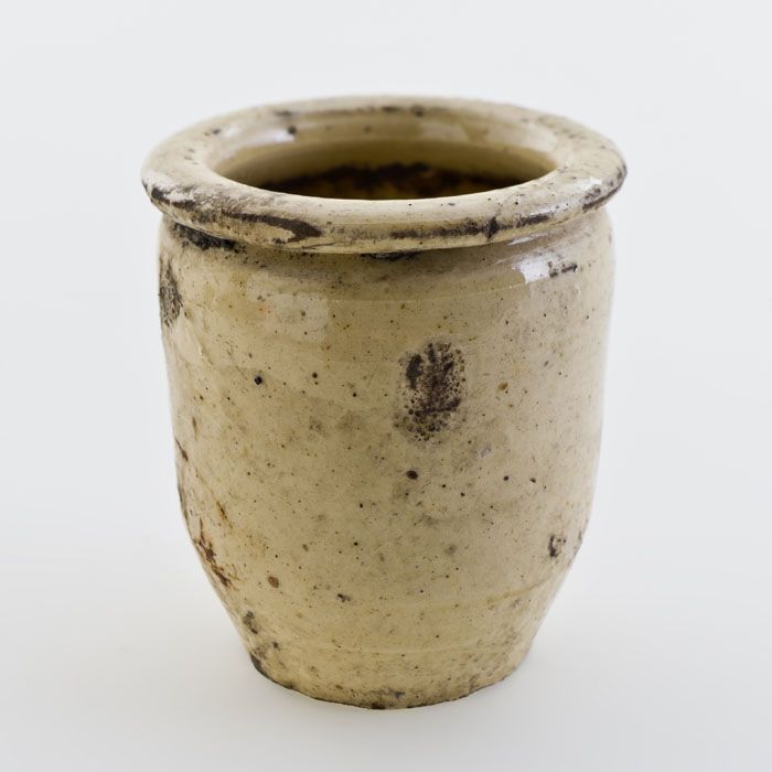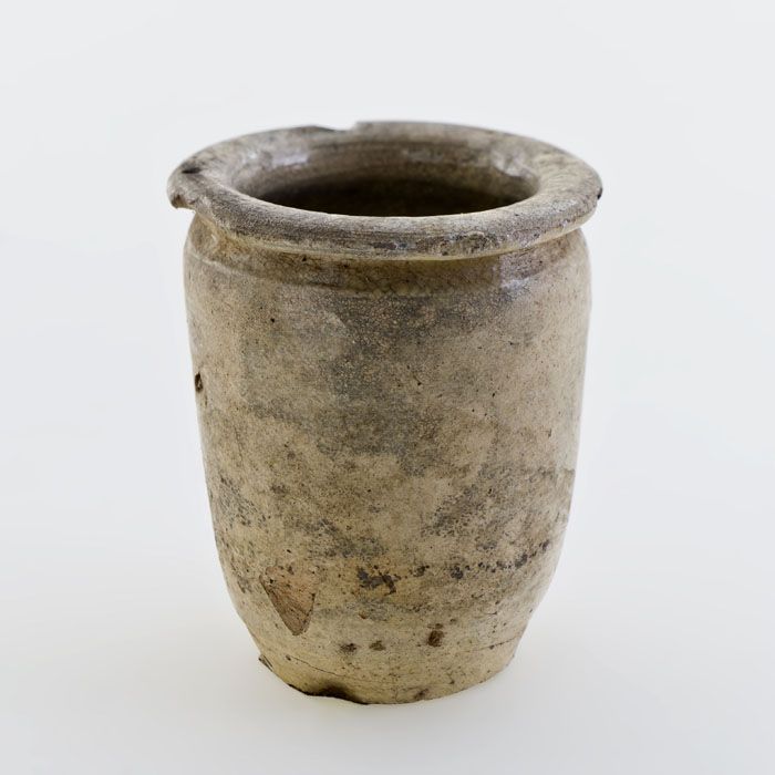 Steengoed zalfpot, mosterd pot, witte scherf, geheel...