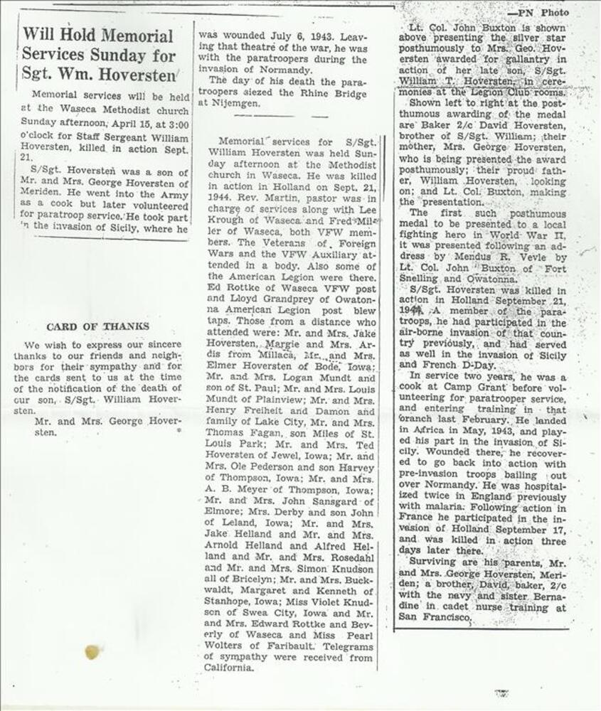Documenten van William T. Hoversten, Staff Sergeant,...