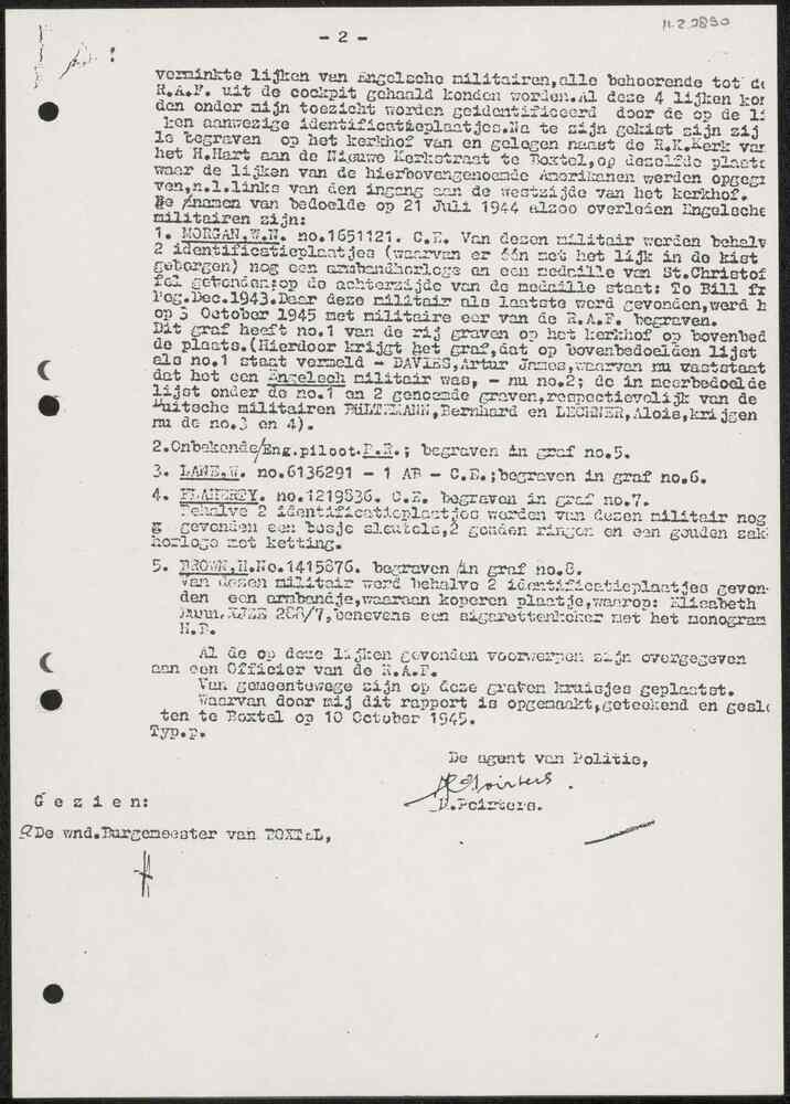 Rapport gemeentepolitie Boxtel 10 oktober 1945.