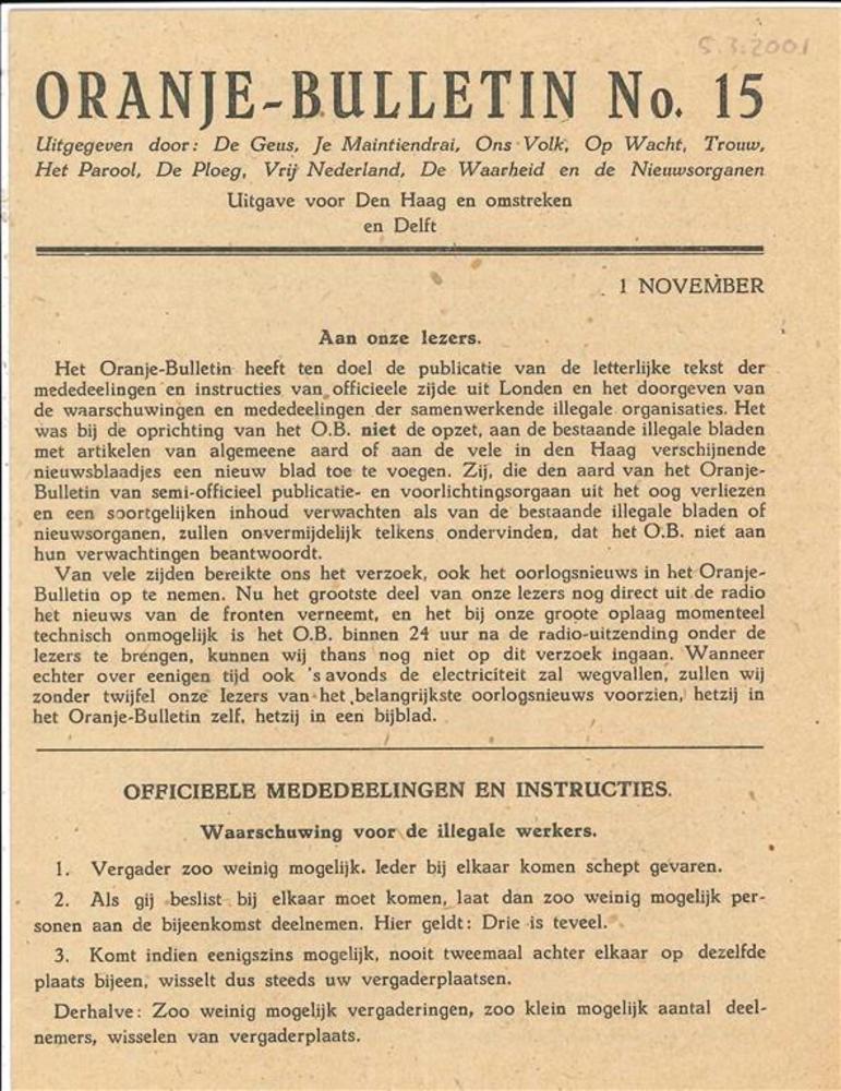 Het Oranjebulletin, No 15. 1 November