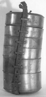 Etensdrager bestaande uit 6 potten, een deksel en ee...