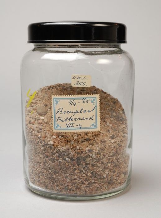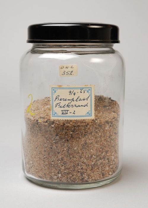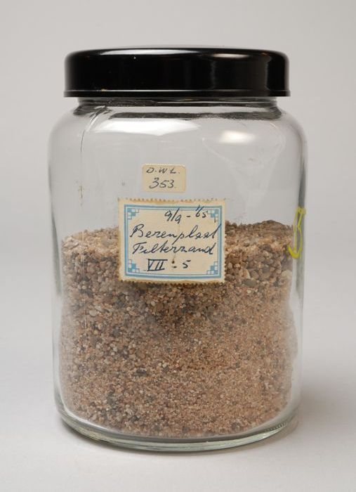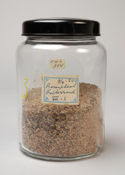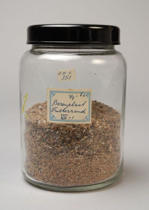 Glazen pot met inhoud en label: "9/9-'65 Berenplaat ...