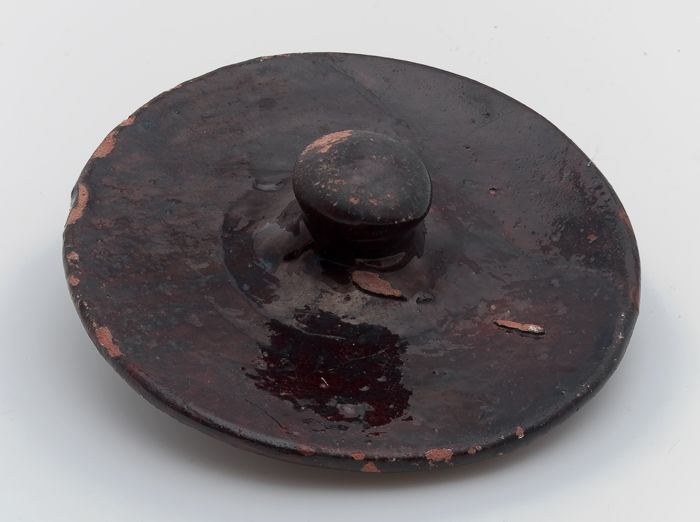 Aardewerk deksel, geheel donkerbruin geglazuurd