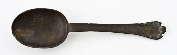 Tinnen lepel met ovaal schepblad, steel met pied de ...