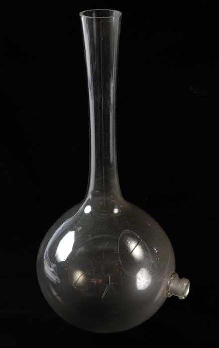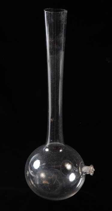 Glazen kolf met ronde bodem en lange hals met naar b...