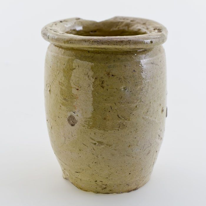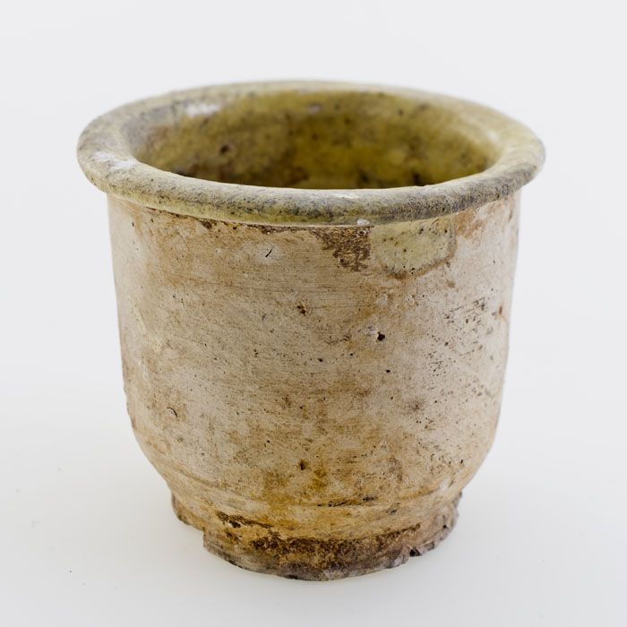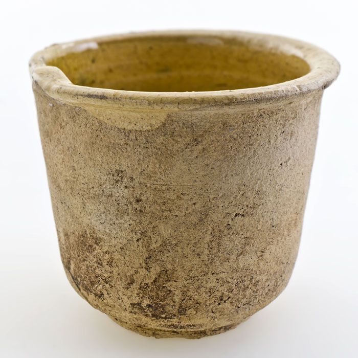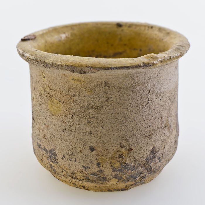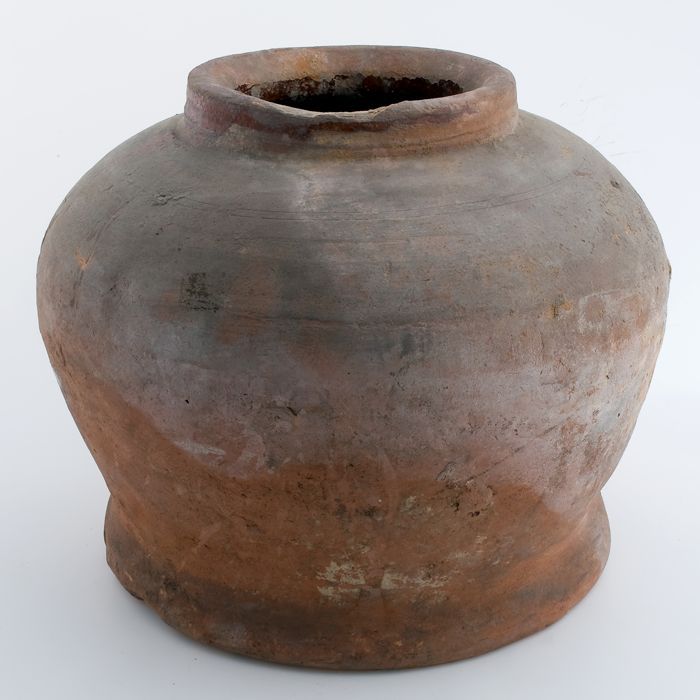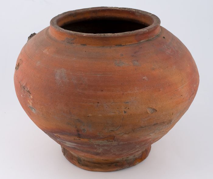 Aardewerk voorraadpot of aspot, ongeglazuurd, op sta...