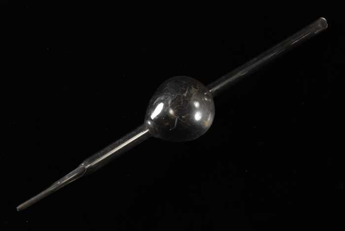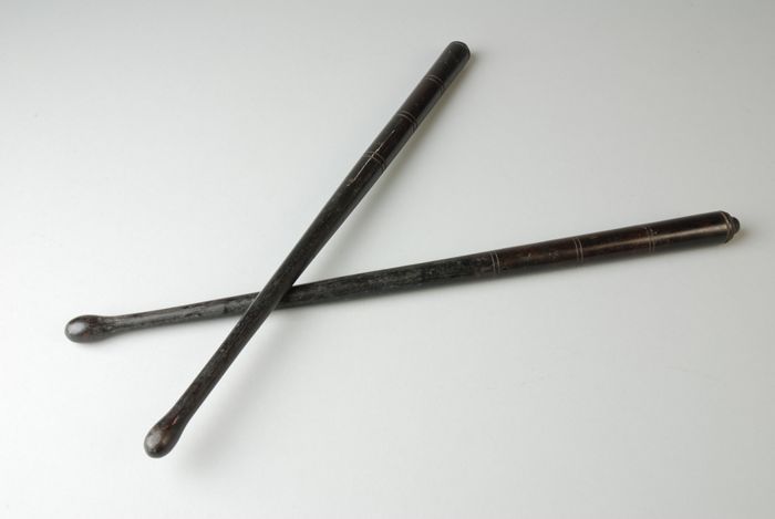 Twee zwarte houten trommelstokken voor de marstromme...